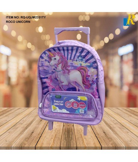 حقيبة ظهر مدرسية روكو يونيكورن بعجلات، وصندوق غداء، وحافظة أقلام