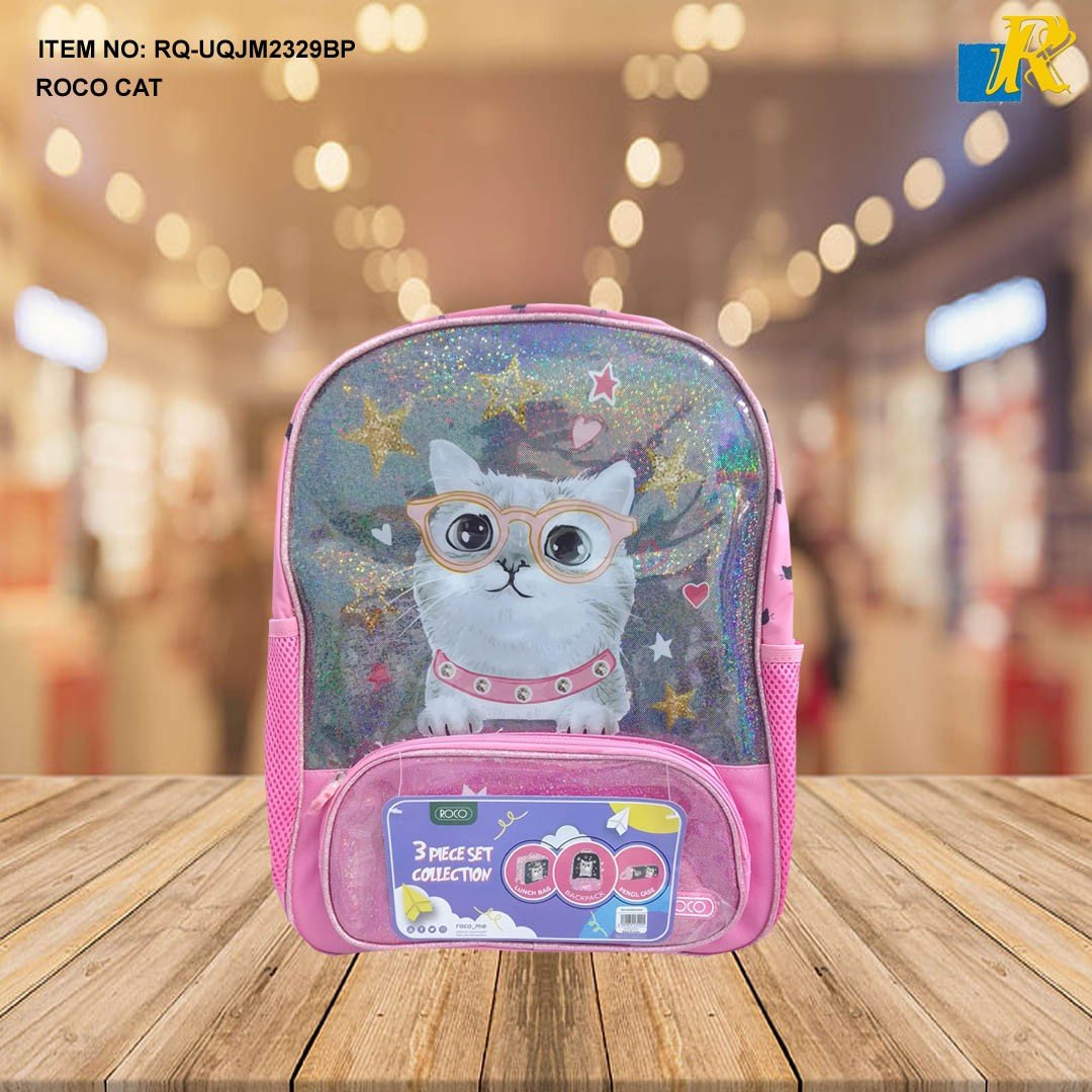 School Bag – Roco Cat Print 3-Piece Backpack